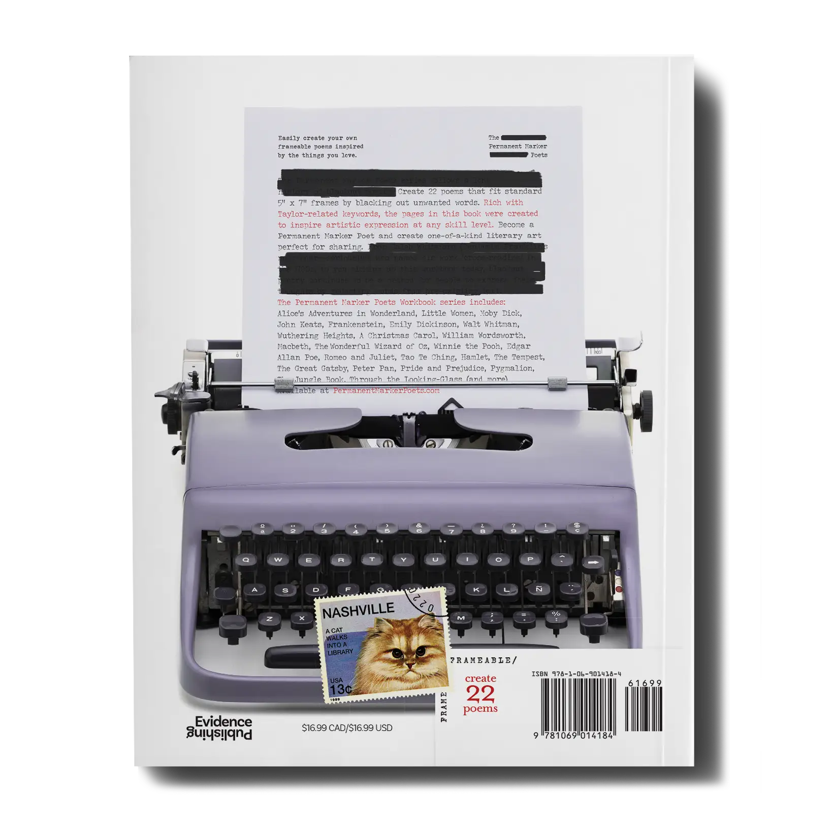 Designed for Swifties and poetry lovers alike, this Taylor-inspired blackout poetry workbook offers endless possibilities to re-shape Taylor’s emotionally impactful lyrics into something new. Each page (22 in total!) is filled with thoughtfully curated and remixed words inspired by Taylor’s music, giving you the chance to craft personalized poems drawn from text that already holds significance.